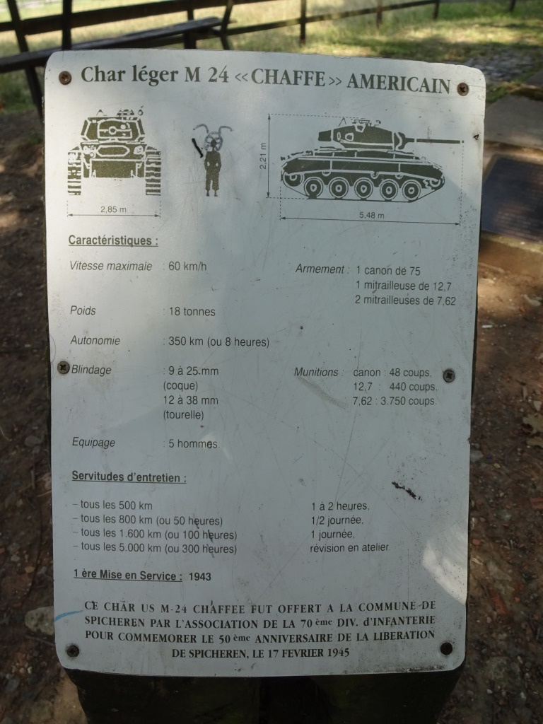 At the Place des Veterans de la 70th Division US, which is on the woods side of the fenced pasture, adjacent to the Bunker Combat Vehicle