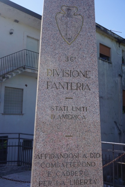 The town of Sant’ Angelo in Theodice and the monument site sit on a bluff above the Gari River which the military in World War 2 called the Rapido River. The site also offers a beautiful view south where the 36th Infantry Division and the 5th Army had fought so hard over the prior to the Rapido River crossing 19-20 January 1944.