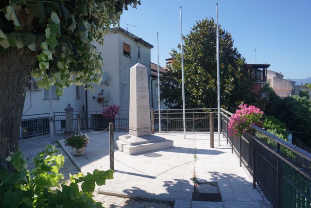 The monument is in the back corner of the piazza/parking lot.