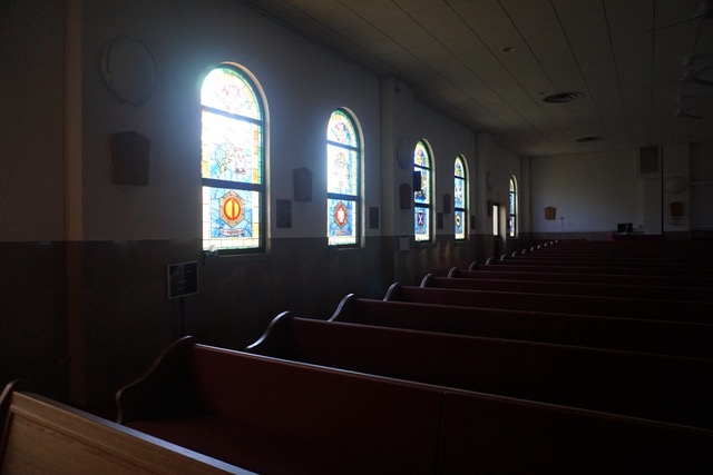 10 stained glass windows and 10 copper plated plaques.