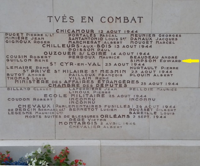 CPT Edward K. Simpson (357th Fighter Group)-Maquis of Lorris Monument