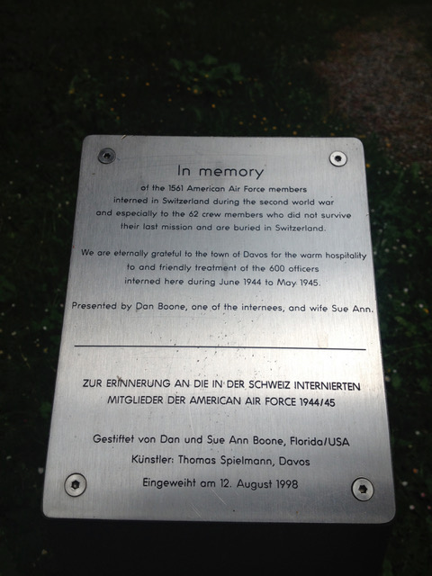 After Camp Moloney in Adelboden (See this website Camp Adelboden) became too crowded, the Swiss sent American officers to Davos starting on June 24, 1944. Davos, a ski town in the eastern region of Switzerland, sets in a valley with one road and a railroad passing through. Davos has four sections, Davos-Platz being the section where American internees were lodged. It is interesting to note the American internees were lodged just down the street from the German embassy. Inevitably, on the 4th of July the Americans shot fireworks at the German embassy, and later several American internees stole the large swastika from the building.