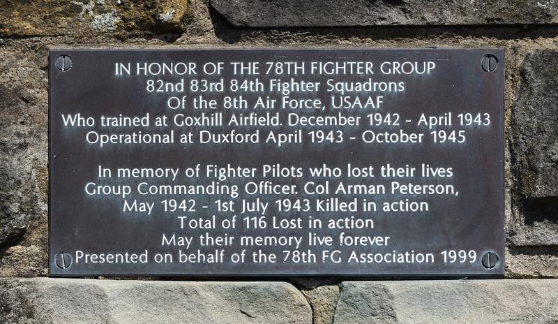 On the back side is a plaque commemorating the 78th Fighter Group and another plaque recognizing the residents of Goxhill who organized and constructed the tribute.