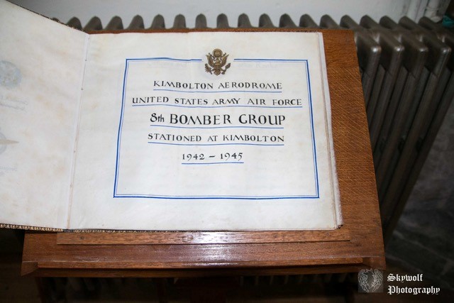 Mounted on a wooden lectern to the left of the chancel, in front of the 379th Bomb Group plaque.