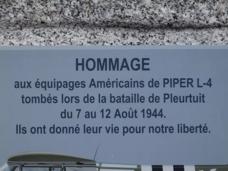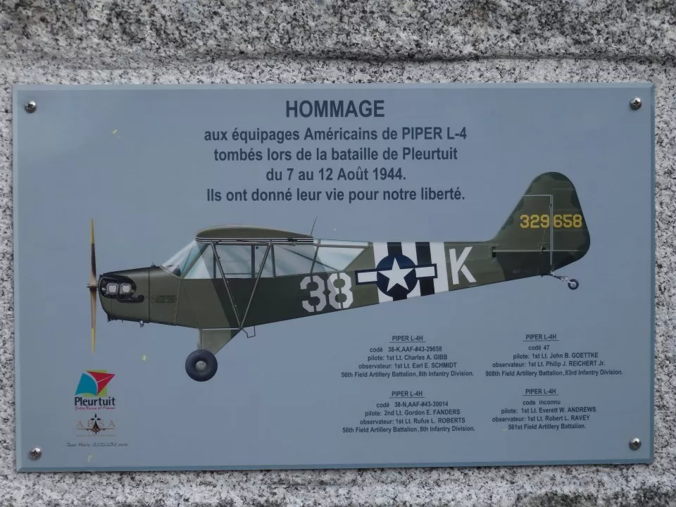 A Piper of the 908th Artillery Battalion was sent to spot enemy artillery fire. It was mortally wounded by German anti-aircraft fire and crashed at 11.30 a.m. at Trébéfour, killing the 1st Lt Goettke and Reichert.