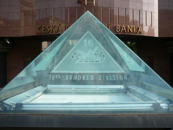 The memorial remembers the 16th Armored Division “Armadillo” which operated in the Czech Republic as part of the 12th Army Group, 3rd US Army during World War 2. The 16th Armored Division Headquarters was located in Pilsen) at the end of World War 2.