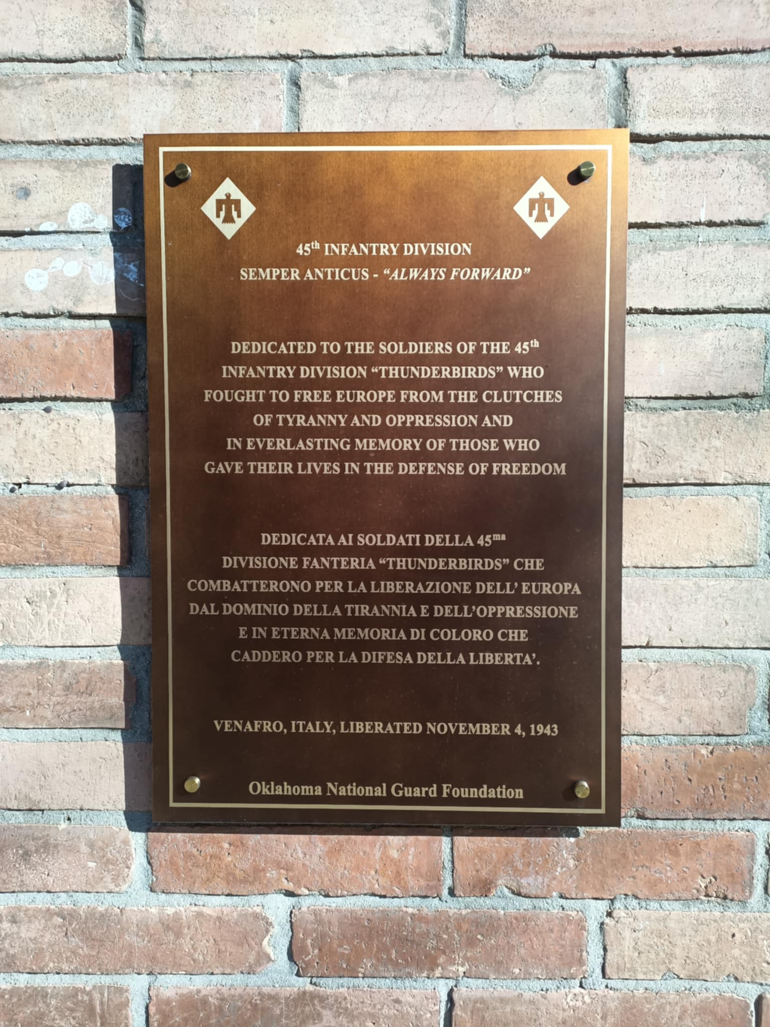 The plaque rememebrs the 45th Infantry Divsion which was staioend in Venafro during winter 1943-44.