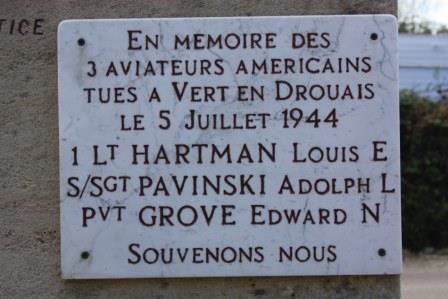 In memory of the three American aviators killed over Vert-en-Drouais on July 5th 1944