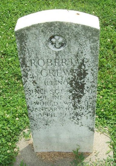 Robert F. Crews, aged 25, was born on January 10, 1920 in Lawrenceville, Lawrence County, Illinois. He served in the 363rd Infantry, 91st Infantry Division as a Staff Sergeant during World War II. Robert died on April 19, 1945 in the battle around the area of Ponzalla in Italy and is now buried in the Lawrenceville City Cemetery, Lawrenceville, Lawrence County, Illinois, USA.