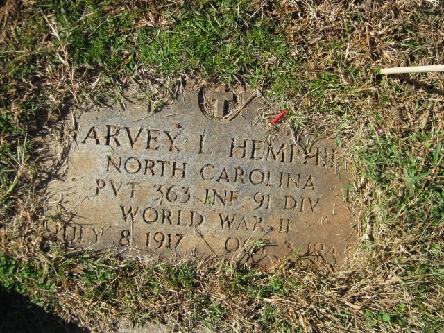 Harvey Lee Hemphill, aged 27, was born on July 8, 1917 in North Carolina. He was the son of Gurley Adger Hemphill and Beatrice Craven Hemphill. Harvey died on October 3, 1944 during the battle in the area of Ponzalla in Italy and is now buried in the Bethlehem United Methodist Church Cemetery, Climax, Guilford County, North Carolina, USA.