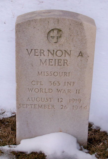 Vernon E. Mosbeck, aged 23, was born on March 7, 1921. He served in the 363rd Infantry, 91st Infantry Division as a Technician Fifth Grade during World War II. Vernon died on September 17, 1944 during the battle in the area of Ponzalla in Italy and is now buried in the Fort Snelling National Cemetery, Minneapolis, Hennepin County, Minnesota, USA.