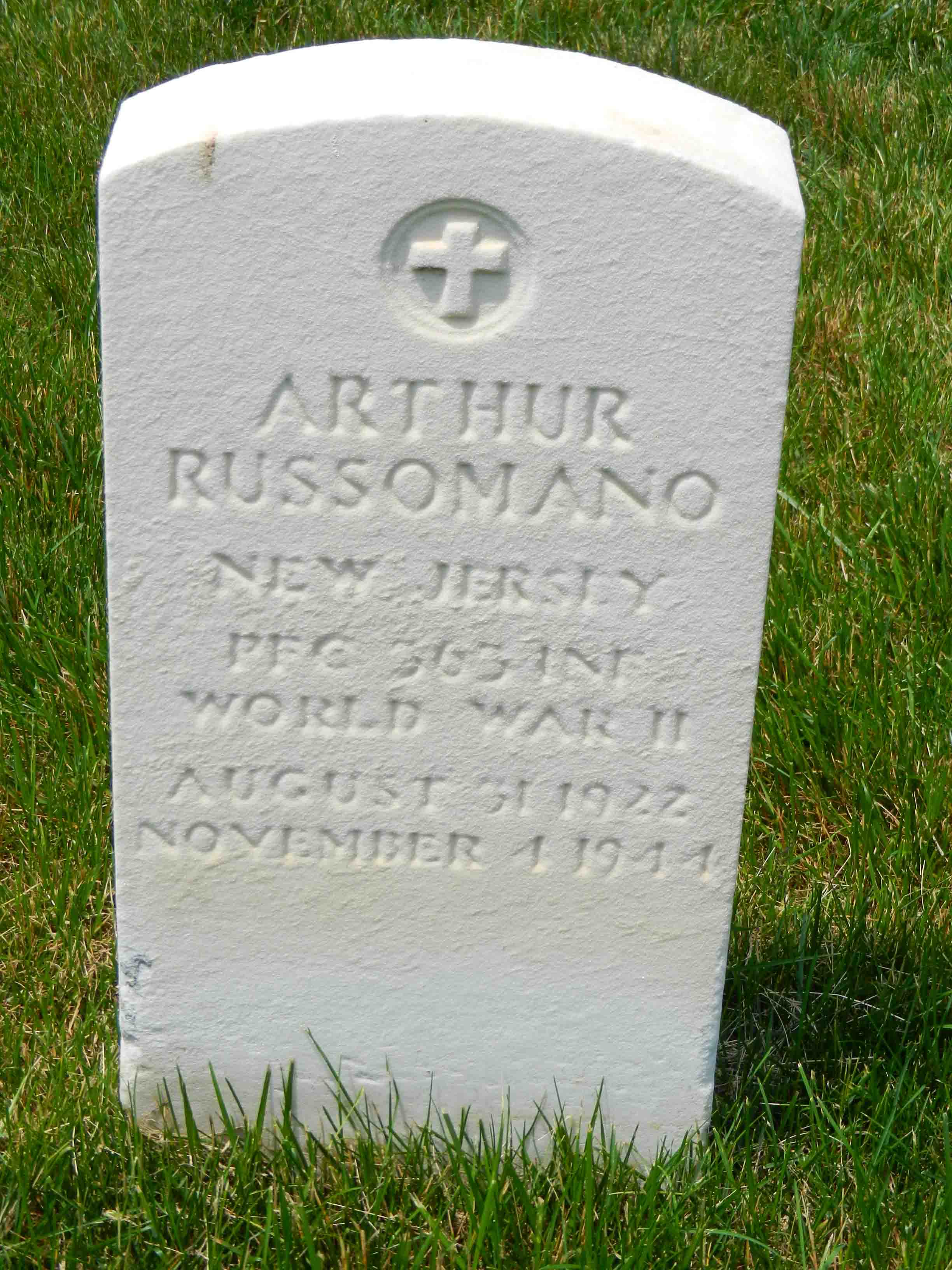 Arthur Russomano, aged 22, was born on August 31, 1922. He served in the 363rd Infantry, 91st Infantry Division as a Private First Class during World War II. Arthur died on November 4, 1944 during the battle in the area of Ponzalla, Italy and is now buried in the Beverly National Cemetery, Beverly, Burlington County, New Jersey, USA.
