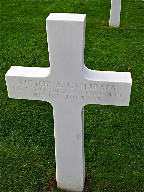 Victor A. Cafferata entered the military service in Illinois. He served in the 563rd Bomber Squadron, 388th Bomber Group, Heavy as a Staff Sergeant during World War II. He died on January 5, 1945 and is now buried in the Cambridge American Cemetery, Cambridge, United Kingdom. Ssgt Cafferata was one of the many brave Americans of the 388th Bomber Group who lost their lives in aerial operations against the German forces from June 1943 - August 1945.
