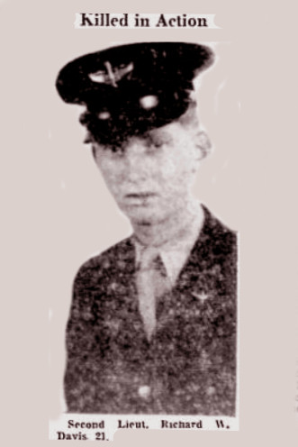 Richard W. Davis entered the military service in Pennsylvania. He served in the 563rd Bomber Squadron, 388th Bomber Group, Heavy as a Second Lieutenant and Pilot of an aircraft during World War II. Lt. Davis in aircraft 42-3548 "Little Willie", was hit by flak at the Northern defenses of the Rhur Valley. He left the formation with the engines smoking but under control. Shortly afterwards, the crew bailed out and the plane blew-up. The enlisted men were in Stalag I, Barth, Germany. Due to cloud coverage in the target area, Brunswick was bombed by PFF methods, on the flares of the PFF aircraft of the lead groups in the wing. Bombs were away at 1040 hours from 20,000 feet. 2Lt Davis is now buried in the Ardennes American Cemetery, Neupré, Belgium. He was one of the many brave Americans of the 388th Bomber Group who lost their lives in aerial operations against the German forces from June 1943 - August 1945.