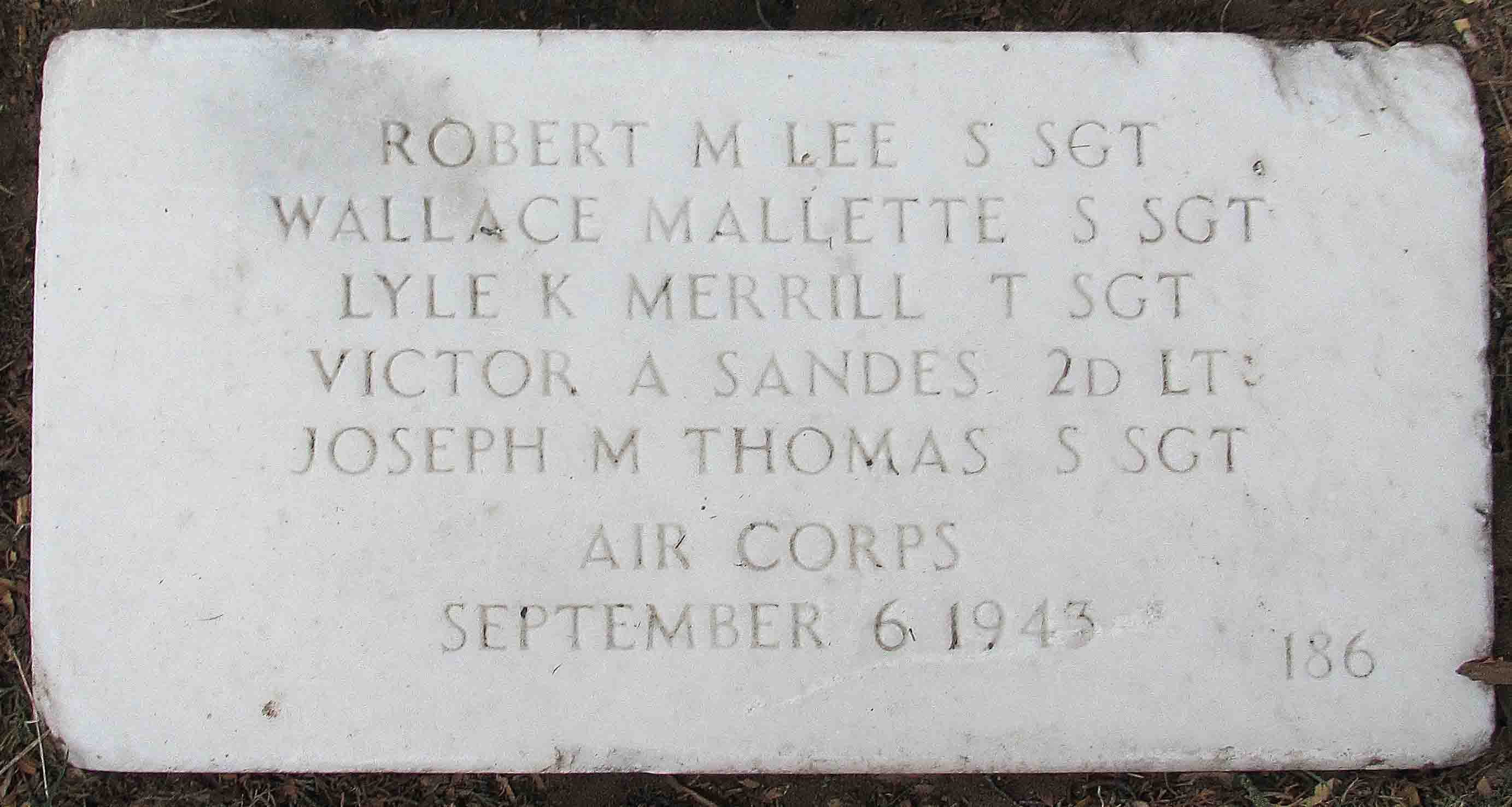 Robert Milo Lee served in the 563rd Bomber Squadron, 388th Bomber Group, Heavy, as a Staff Sergeant and Ball Turret Gunner of #42-30234 aircraft during World War II. He was Killed in Action on September 6, 1943 and is now buried in the Jefferson Barracks National Cemetery, Lemay, St. Louis County, Missouri, USA in a common grave with his crew. Robert was one of the many brave Americans of the 388th Bomber Group who lost their lives in aerial operations against the German forces from June 1943 - August 1945.