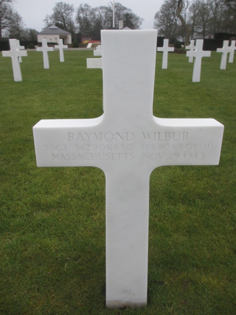 Raymond Wilbur entered the military service in Massachuetts. He served in the 562nd Bomber Squadron, 388th Bomber Group (Heavy), as a Staff Sergeant and Ball Turret Gunner of #42-5954 "Mister Yank II" aircraft during World War II. He was Killed in Action on November 29, 1943 and is now buried in the Cambridge American Cemetery, Cambridge, United Kingdom. SSgt Wilbur was one of the many brave Americans of the 388th Bomber Group who lost their lives in aerial operations against the German forces from June 1943 - August 1945.