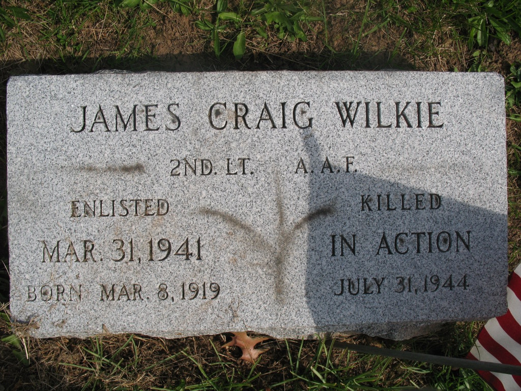 James Craig Wilkie was born on March 8, 1919 in Grove City, Mercer County, Pennsylvania. A graduate of Grove City High school, he enlisted in the Air Force on March 22, 1940, at Randolph Field, Texas, and was commissioned in Albuquerque, New Mexico. James served in the 561st Bomber Squadron, 388th Bomber Group (Heavy), as a Second Lieutenant and Bombardier of #42-97328 "Heavens Above" aircraft during World War II. He was Killed in Action on July 31, 1944 over Germany and is now buried in the Union Dale Cemetery, Pittsburgh, Allegheny County, Pennsylvania, USA. 2Lt Wilkie was one of the many brave Americans of the 388th Bomber Group who lost their lives in aerial operations against the German forces from June 1943 - August 1945.