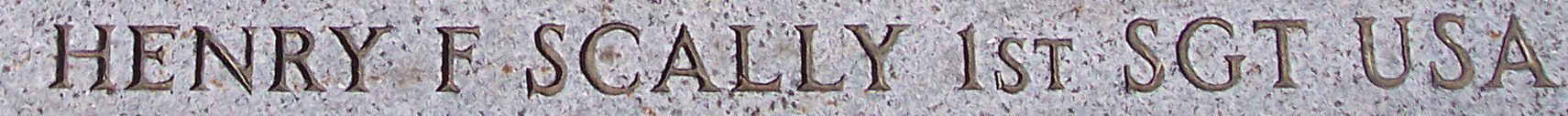 Henry Fredrick Scally was born on April 12, 1919. He served in Battery G, 200th Coast Artillery Regiment (AntiAircraft), as a First Sergeant during World War II. An American prisoner of war, he was one of the Japanese massacre victims in Puerto Princesa, Palawan Philippines. In order to prevent the rescue of prisoners of war by the advancing Allies, on 14 December 1944, units of the Japanese Fourteenth Area Army (under the command of General Tomoyuki Yamashita) brought the POWs back to their own camp. An air raid warning was sounded to get the prisoners into the shelter trenches, the 150 prisoners of war at Puerto Princesa entered those trenches, and the Japanese soldiers set them on fire using barrels of gasoline. Prisoners who tried to escape the flames were shot down by machine gun fire. Others attempted to escape by climbing over a cliff that ran along one side of the trenches, but were later hunted down and killed. Only 11 men escaped the slaughter; 139 were killed. Those that did escape to southern Palawan, and eventual rescue, were aided by Filipino scouts and guerrillas under the command of Nazario Mayor. Of the victims, 123 are buried in a mass grave at Jefferson Barracks National Cemetery, St. Louis, Missouri, including 1SGT Scally.