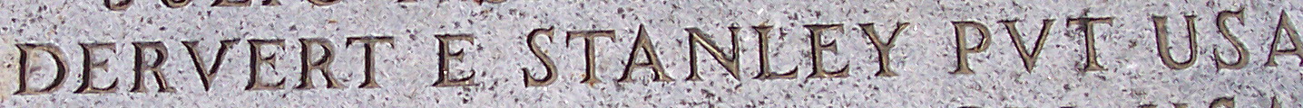 Dervert Eugene Stanley was born on October 19, 1920. He served in the Coast Artillery Corps as a Private during World War II. An American prisoner of war, he was one of the Japanese massacre victims in Puerto Princesa, Palawan Philippines. In order to prevent the rescue of prisoners of war by the advancing Allies, on 14 December 1944, units of the Japanese Fourteenth Area Army (under the command of General Tomoyuki Yamashita) brought the POWs back to their own camp. An air raid warning was sounded to get the prisoners into the shelter trenches, the 150 prisoners of war at Puerto Princesa entered those trenches, and the Japanese soldiers set them on fire using barrels of gasoline. Prisoners who tried to escape the flames were shot down by machine gun fire. Others attempted to escape by climbing over a cliff that ran along one side of the trenches, but were later hunted down and killed. Only 11 men escaped the slaughter; 139 were killed. Those that did escape to southern Palawan, and eventual rescue, were aided by Filipino scouts and guerrillas under the command of Nazario Mayor. Of the victims, 123 are buried in a mass grave at Jefferson Barracks National Cemetery, St. Louis, Missouri, including PVT Stanley.