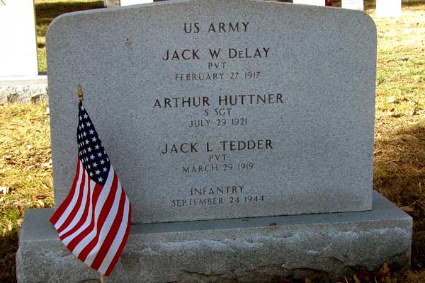 Jack L. Tedder was born on March 28, 1919. He served in the 501st Parachute Infantry Regiment, 101st Airborne Division as a Private during World War II. He was Killed in Action on September 24, 1944 defending the village of Eerde, The Netherlands against German forces. He is now buried in the Arlington National Cemetery, Arlington, Arlington County, Virginia, USA in the same grave with PVT DeLay and SSGT Huttner.