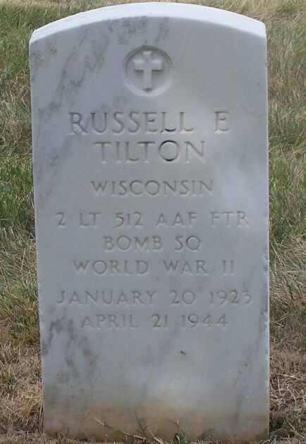 Russell E. Tilton was born on January 20, 1923. He served in the 512th Fighter Squadron, 406th Fighter Group, as a Second Lieutenant during World War II. He died on April 21, 1944, at the age of 21, and is now buried in the Springfield National Cemetery, Springfield, Greene County, Missouri, USA.
