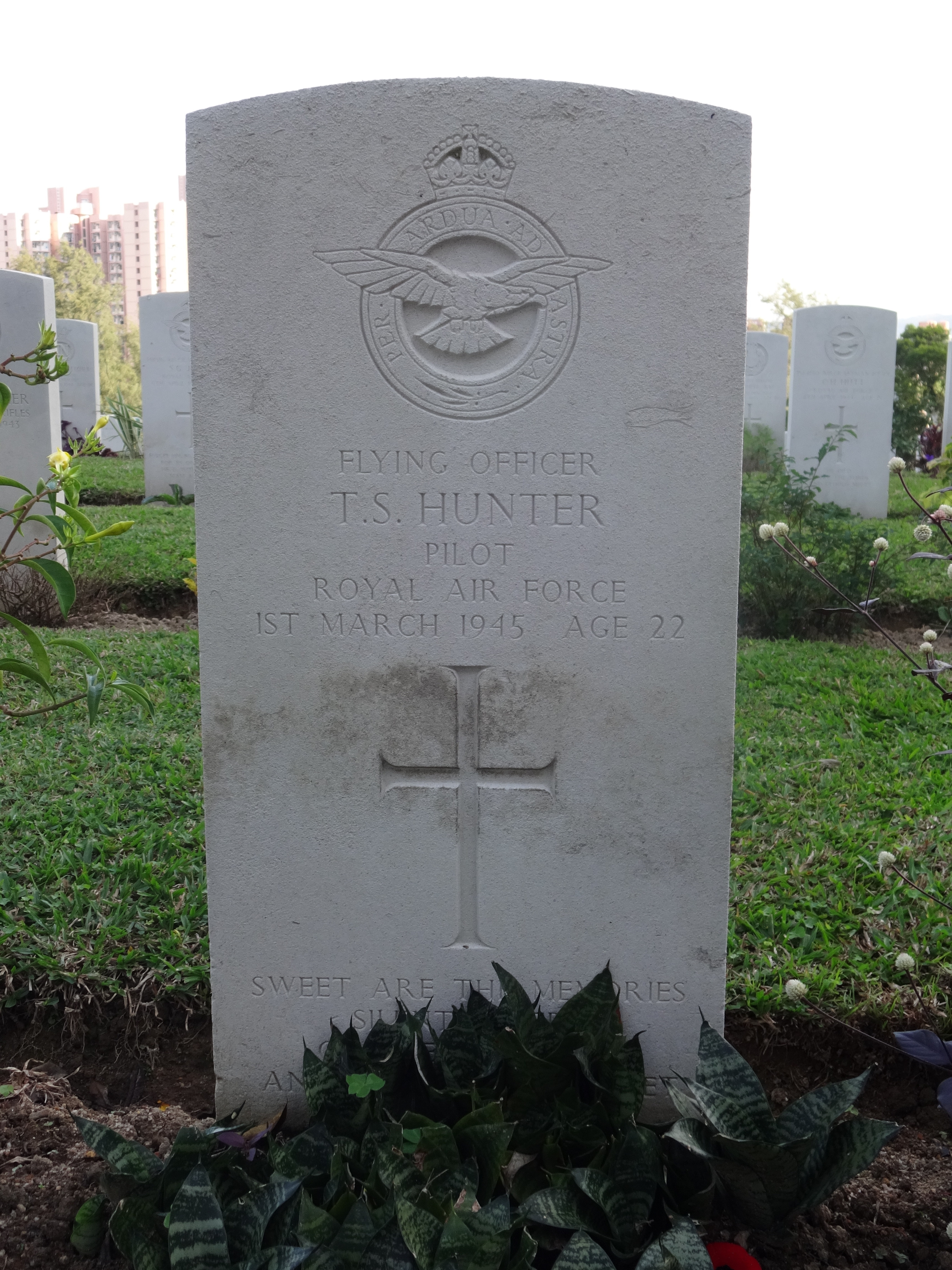 Thomas Hunter was born in Scotland in 1922. He lived in California and attended the Burbank High School. He enlisted in the Royal Air Force and served in the Shina Theater. He was KIA while flying with the "Cloak and Dagger" Squadron on March 1, 1945.