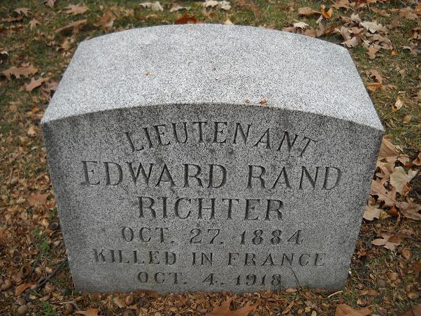 Edward Rand Richter, of Milwaukee, Wisconsin, was born on October 27, 1884. He served in the US military as a Second Lieutenant during World War I. He was killed in an airplane accident in France on October 4, 1918, and is now buried in the Forest Home Cemetery, Milwaukee, Milwaukee County, Wisconsin, USA. 2Lt Richter was one of the 171 American servicemen who trained at the Third Aviation Instruction Center in France and died between 1917-1919.