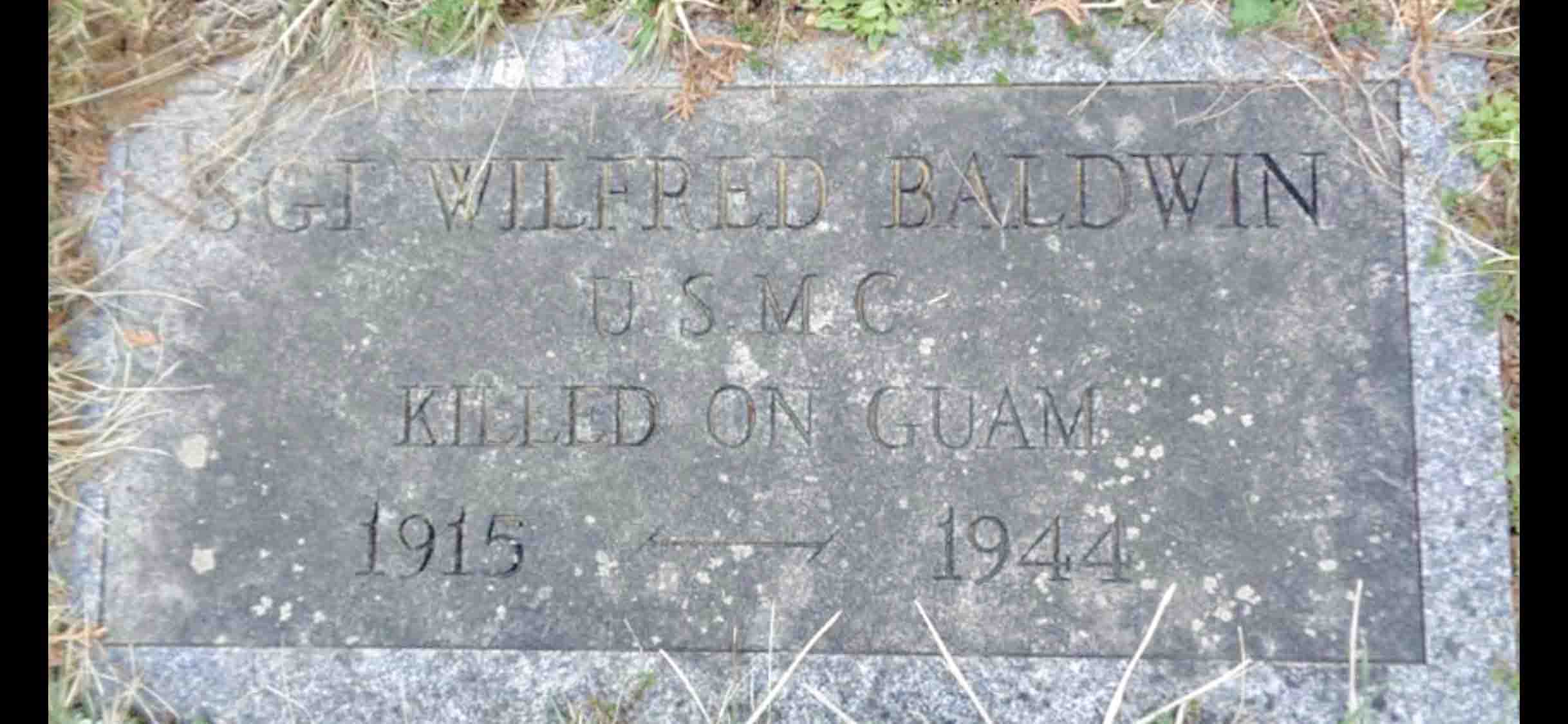 The President of the United States of America takes pride in presenting the Silver Star (Posthumously) to Corporal Wilfred Baldwin (MCSN: 273233), United States Marine Corps, for conspicuous gallantry and intrepidity while serving with the Fourth Marines (Reinforced), First Provisional Marine Brigade, during action against enemy Japanese forces at Guam, Marianas Islands, on July 30, 1944. When the Intelligence Section sent out a patrol to capture Japanese prisoners and obtain vital information, Corporal Baldwin unhesitatingly volunteered to take part in the hazardous mission, courageously advancing toward the hostile objective until a sudden burst of withering fire from ambush wounded a companion in both legs. Fighting with determined aggressiveness throughout the ensuing savage action, he valiantly attempted to go to the rescue of the wounded man who was twice bayoneted by charging Japanese but was himself fatally struck down by enemy machine gun fire. Corporal Baldwin's daring initiative and resolute devotion to duty in the face of grave peril were in keeping with the highest traditions of the United States Naval Service. He gallantly gave his life for his country.