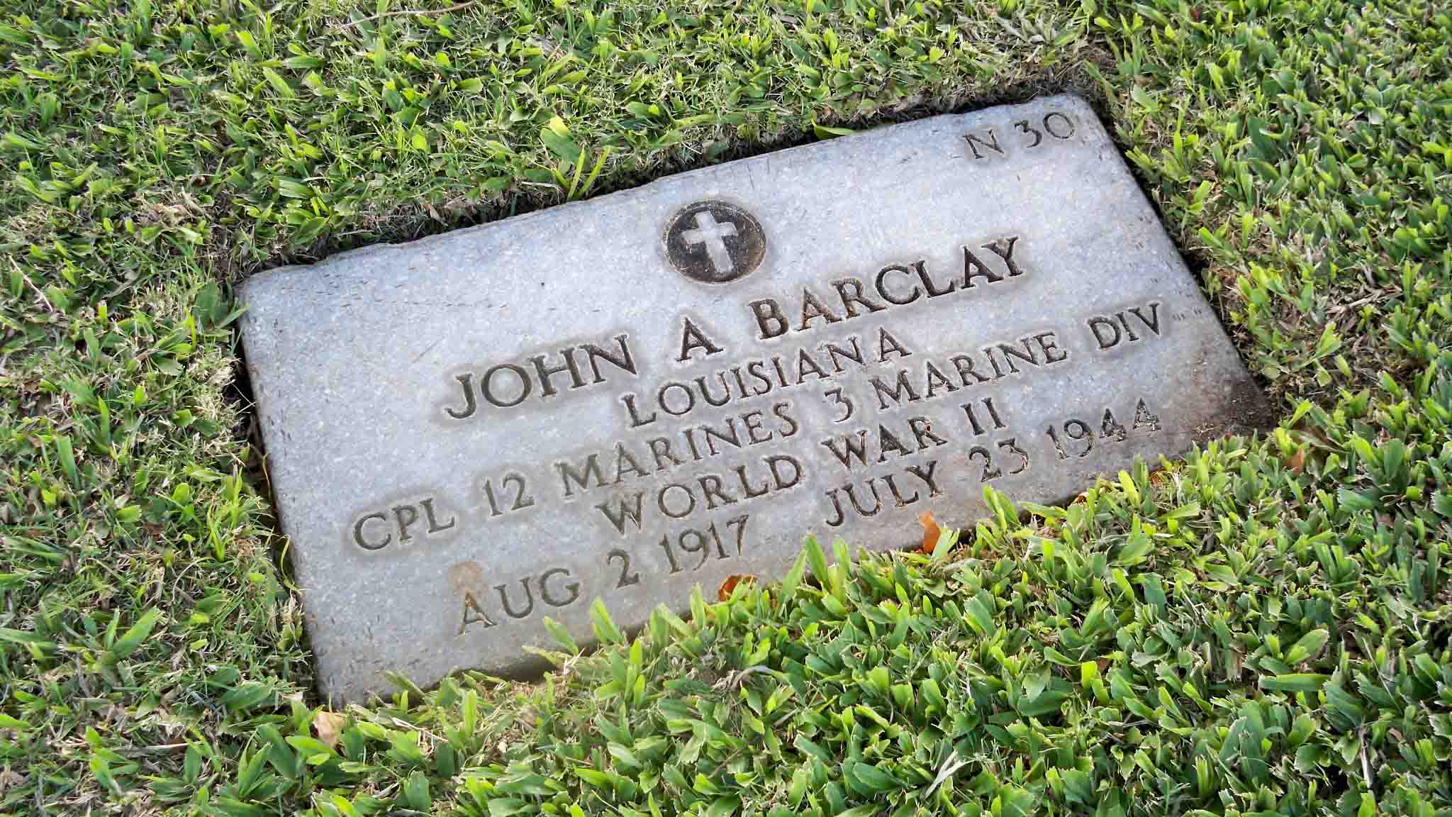 John Anderson Barclay was born on August 2, 1917. He served in Battery H, 3rd Battalion, 12th Marine Regiment, 3rd Marine Division, as a Corporal during World War II. He was Killed in Action on July 23, 1944, during the Battle for Guam.
