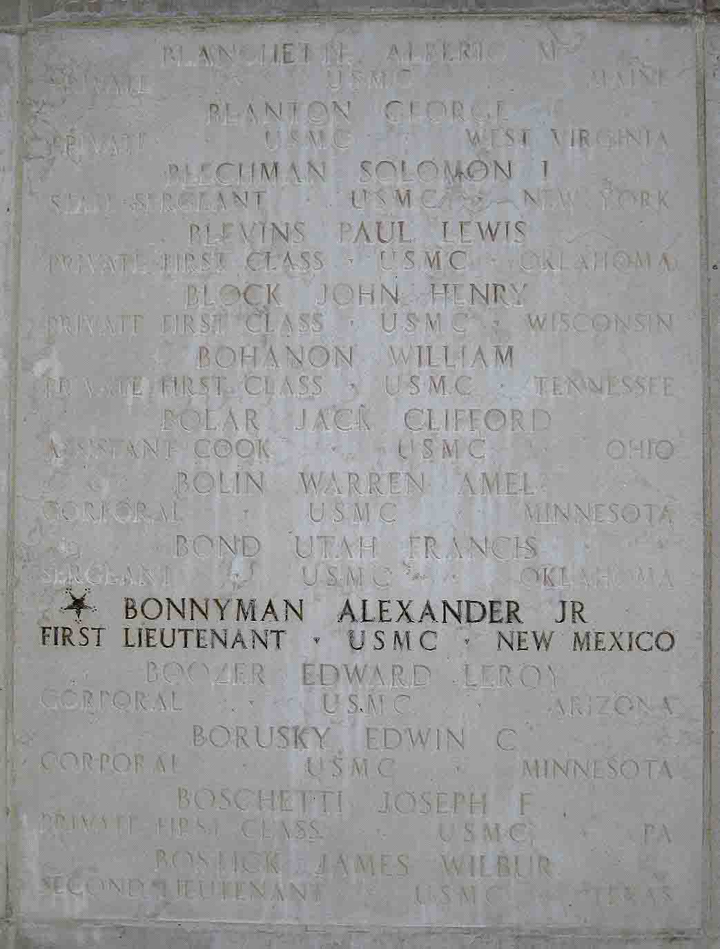 Solomon Israel Blechman served in the Headquarters and Service Company, 9th Marine Regiment, 3rd Marine Division as a Staff Sergeant during World War II. He died from his wounds received in battle on July 21, 1944, during the Battle for Guam.