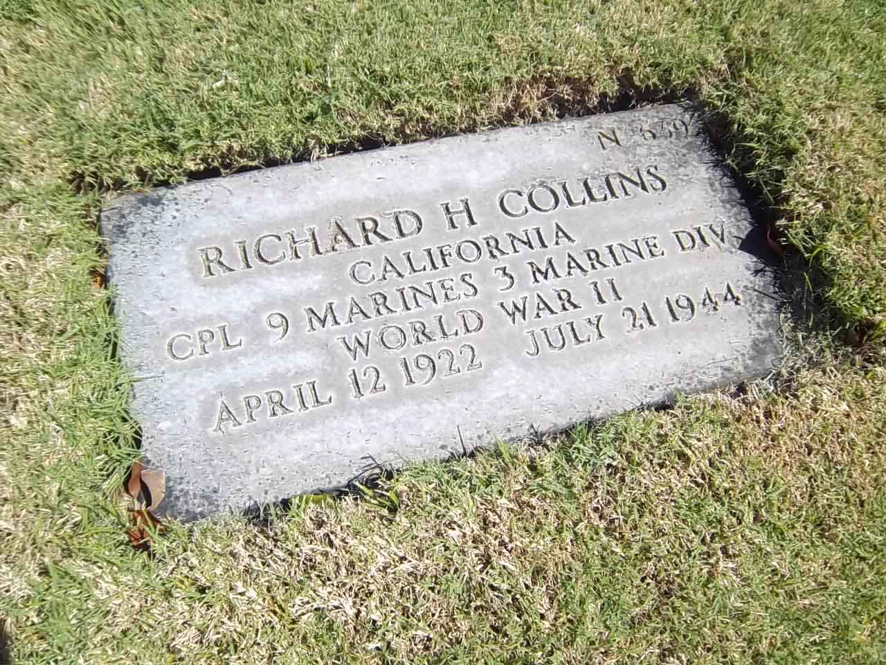 Richard Herman Collins was born on April 12, 1922. He served in Headquarters Company, 1st Battalion, 9th Marine Regiment, 3rd Marine Division as a Corporal during World War II. He was Killed in Action on July 21, 1944, during the Battle for Guam.