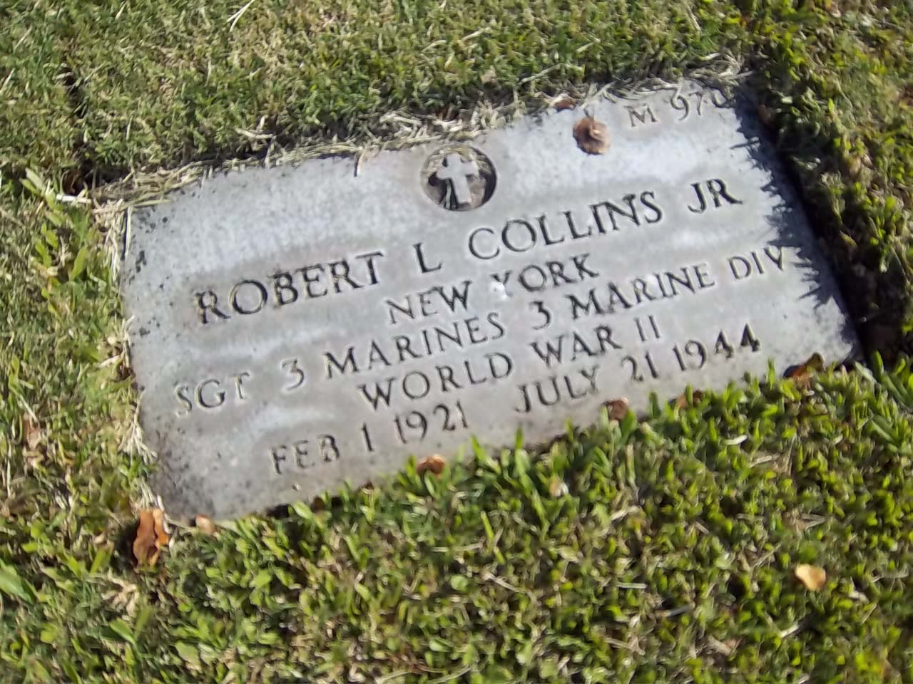 Robert L. Collins Jr. was born on February 1, 1921. He served in the 3rd Marine Regiment, 3rd Marine Division as a sergeant during World War II. He died on July 21, 1944, during the Battle for Guam.