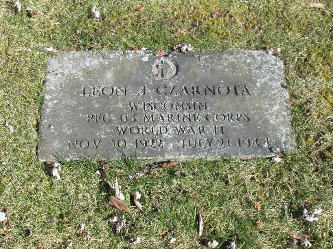 Leon Joseph Czarnota was born on November 30, 1922. He served in Company C, 3rd Amphibious Tractor Battalion, United States Marine Corps as a Private First Class during World War II. He was Killed in Action on July 21, 1944, during the Battle for Guam.