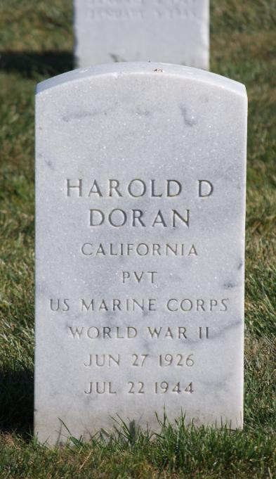 Harold Dean Doran was born on June 27, 1926. He served in the Engineer Company, 4th Marine Regiment, 1st Provisional Marine Brigade as a Private during World War II. He was Killed in Action on July 22, 1944, during the Battle for Guam.