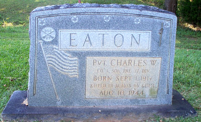 Charles W. Eaton was born on September 1, 1917. He served in Company A, 306th Infantry Regiment, 77th Division as a Private during World War II. He was Killed in Action on August 10, 1944, during the Battle for Guam.