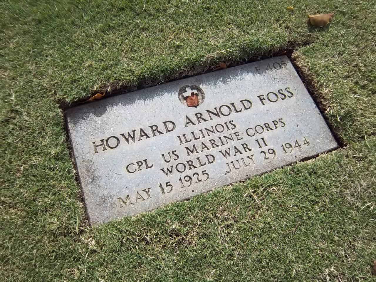 Howard Arnold Foss was born on May 15, 1925, in Chicago, Cook County, Illinois. He served in the Headquarters Company, Headquarters and Service Battalion, United States Marine Corps as a Corporal during World War II. He was Killed in Action on July 29, 1944, during the Battle for Guam.