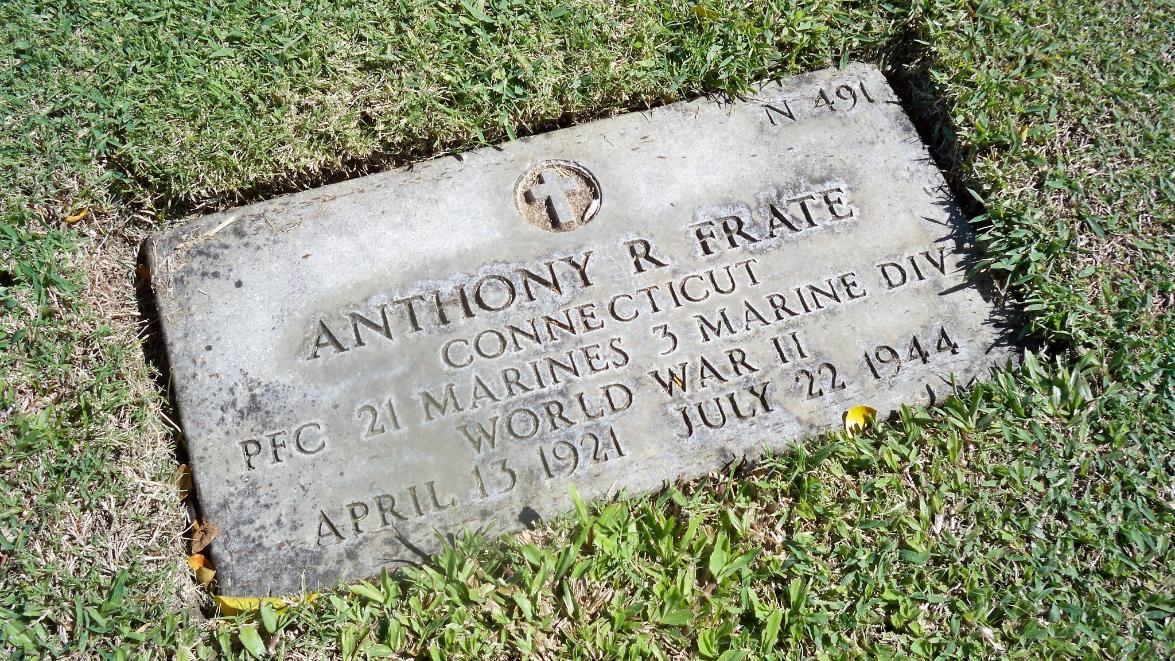 Anthony Richard Frate was born on April 13, 1921. He served in Company F, 2nd Battalion, 21st Marine Regiment, 3rd Marine Division as a Private First Class during World War II. He was Killed in Action on July 22, 1944, during the Battle for Guam.