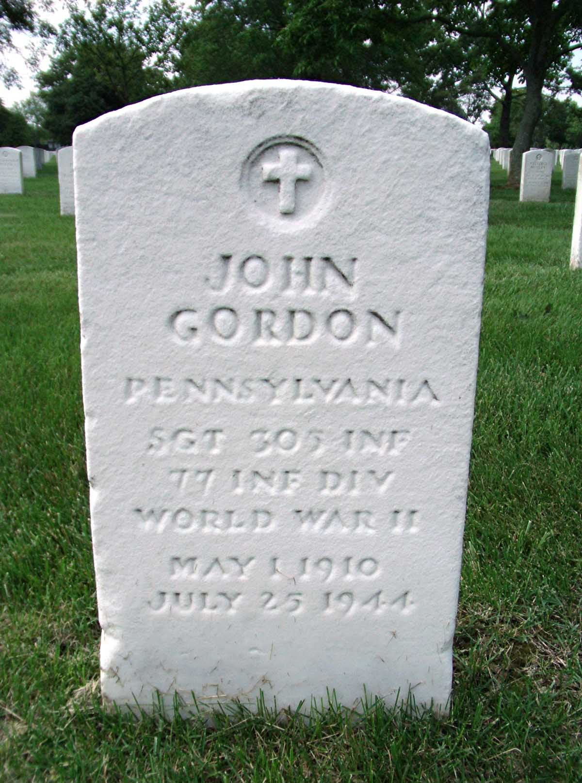 John Gordon was born on May 1, 1910. He served in the 305th Infantry Regiment, 77th Division