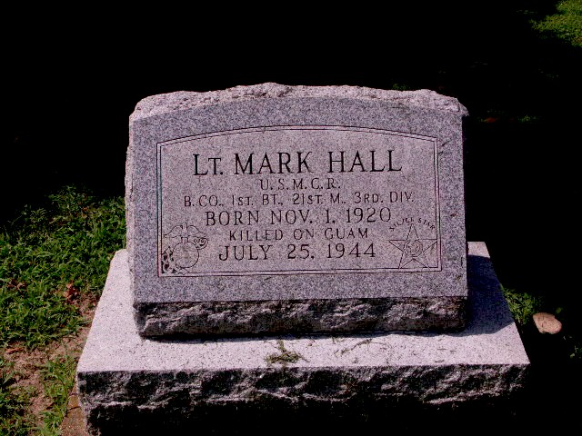 The President of the United States of America takes pride in presenting the Silver Star (Posthumously) to Second Lieutenant Mark Hall (MCSN: 0-28409), United States Marine Corps Reserve, for conspicuous gallantry and intrepidity as Rifle Platoon Leader attached to the First Battalion, Twenty-First Marines, THIRD Marine Division during action against enemy Japanese forces on the Asan-Adelup Beachhead, Guam, Marianas Island from 22 to 25 July 1944. When Japanese forces launched numerous vicious counter attacks against the sector of the beachhead line occupied by his platoon, Second Lieutenant Hall repeatedly braved intense hostile fire during three consecutive nights of bitter action, fearlessly advancing the entire length of his platoon within each two hour period throughout the hours of darkness to instruct his men and encourage them to hold fast despite the tremendous odds. Informed that a strong force of Japanese were entrenched in caves in a rock quarry during a perilous engagement on 25 July he skillfully deployed his platoon then accompanied a scout to a point where the lead scout had been wounded and while throwing grenades into the hostile emplacement was mortally wounded by enemy fire. By his fearless initiative, great personal valor and inspiring leadership in the face of grave peril, Second Lieutenant Hall contributed immeasurably to the success of our forces in recapturing this vital Japanese stronghold, and his zealous devotion to duty throughout was in keeping with the highest traditions of the United States Naval Service. He gallantly gave his life for his country. p style='margin:0cm;font-size:15px;font-family:"Calibri",sans-serif;'>Source of information: www.findagrave.com