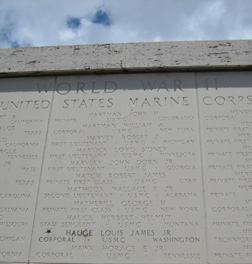 He served in the Headquarters and Service Company, 19th Marine Regiment, 3rd Marine Division as a Staff Sergeant during World War II. He died from his wounds received in battle on July 23, 1944, during the Battle for Guam.