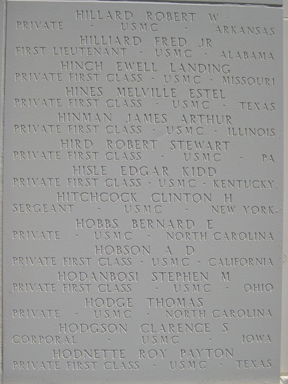 He served in the Regiment Weapons Company, 3rd Marine Regiment, 3rd Marine Division as a Private First Class during World War II. He died from his wounds received in battle on August 1, 1944, during the Battle for Guam. He has a centopah in Willow Cemetery, Haskell, Haskell County, Texas, USA.