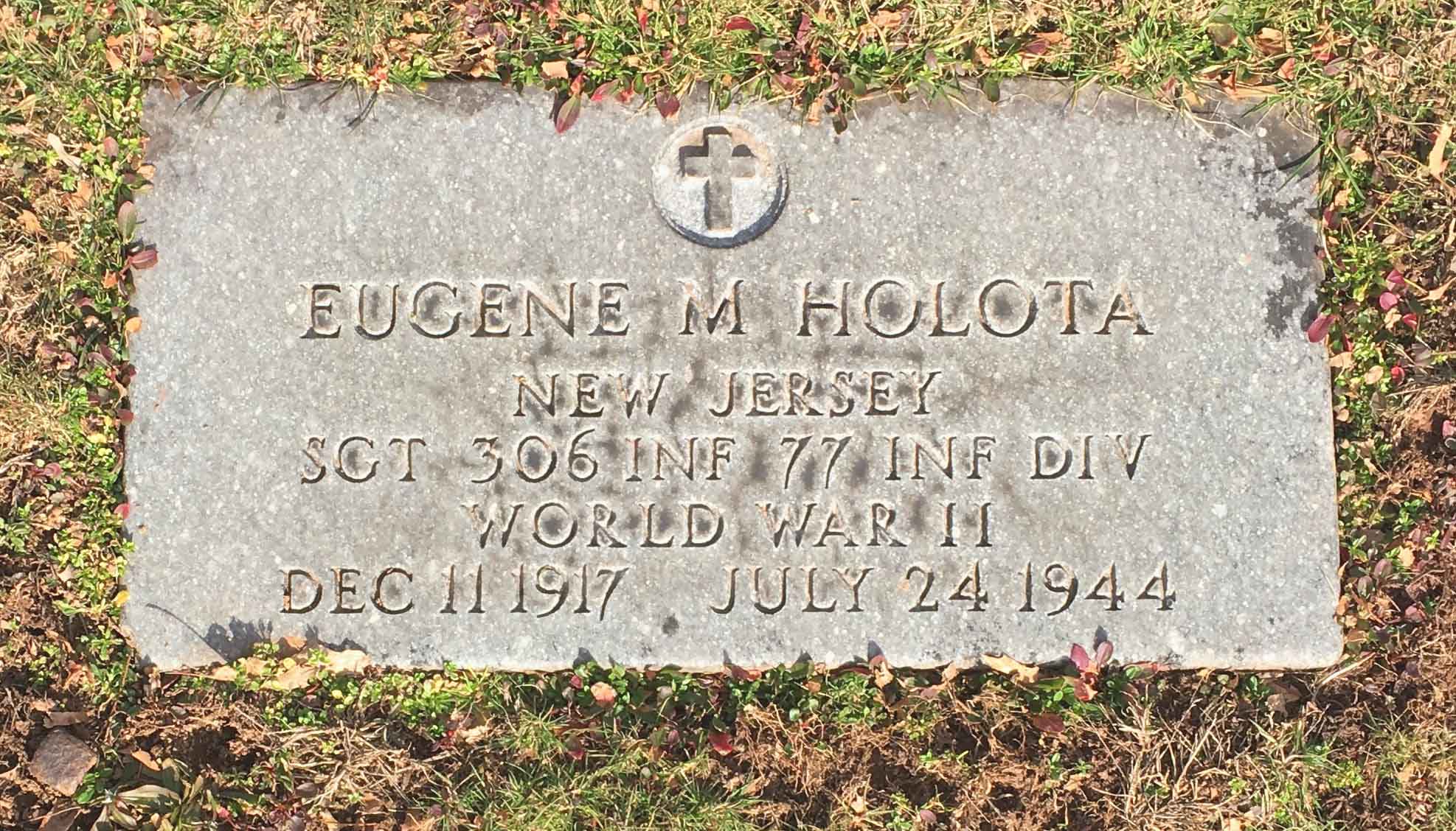 Eugene M. Holota was born on December 11, 1917. He served in the 306th Infantry Regiment, 77th Division as a Sergeant during World War II. He was Killed in Action on July 24, 1944, during the Battle for Guam.