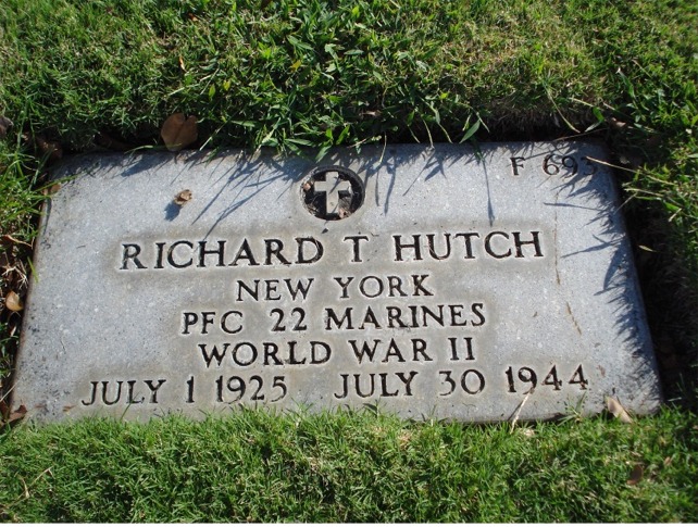 Richard Thomas Hutch was born on July 1, 1925, in Manhattan, New York County, New York. He served in Company K, 3rd Battalion, 22nd Marine Regiment, 1st Provisional Marine Brigade as a Private First Class during World War II. He died from his wounds received in battle on July 30, 1944, during the Battle for Guam.