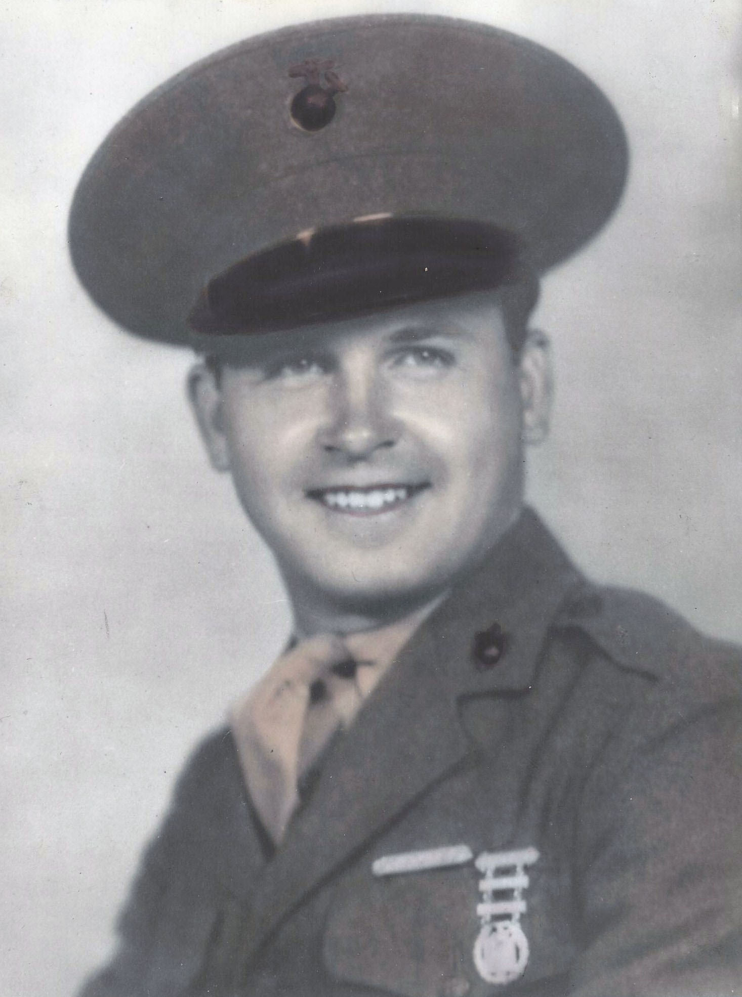 He served in Company F, 2nd Battalion, 4th Marine Regiment, 1st Provisional Marine Brigade as a Private First Class during World War II. He was Killed in Action on July 21, 1944, during the Battle for Guam.