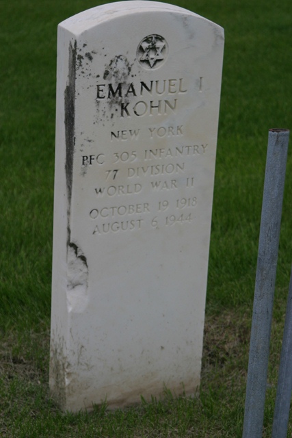 Emanuel Isadore Kohn was born on October 19, 1918, in Ramsey County, Minnesota. He was the son of Maurice Kohn. He served in the 305th Infantry Regiment, 77th Division as a Private First Class during World War II. He died on August 6, 1944, during the Battle for Guam.