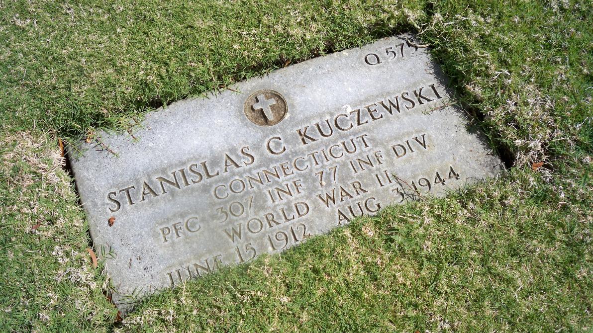 Stanislas C. Kuczewski was born on June 15, 1912. He served in the 307th Infantry Regiment, 77th Division as a Private First Class during World War II. He died on August 3, 1944, during the Battle for Guam.