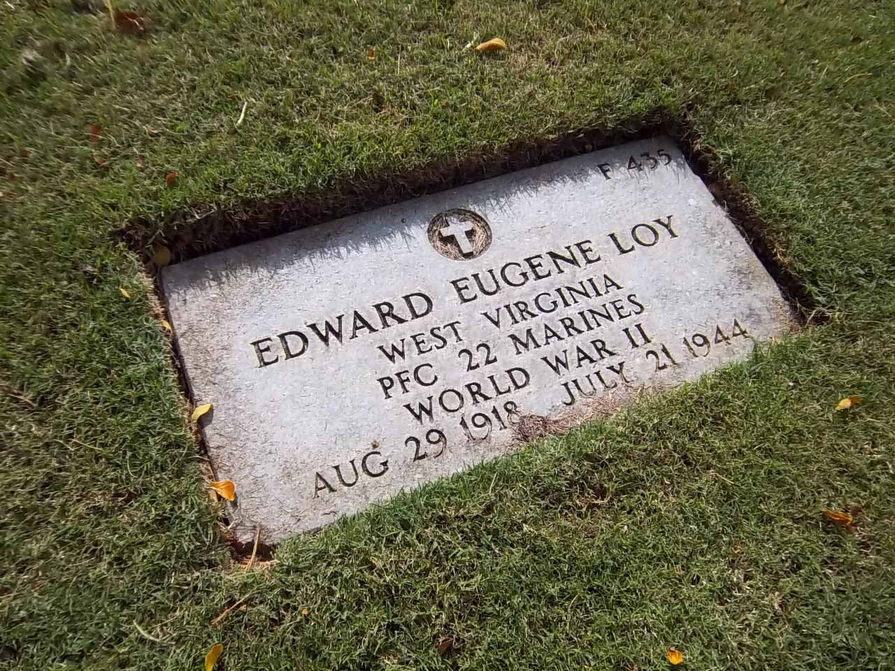 Edward Eugene Loy was born on August 29, 1918. He served in Company C, 1st Battalion, 22nd Marine Regiment, 1st Provisional Marine Brigade as a Private First Class during World War II. He was Killed in Action on July 21, 1944, during the Battle for Guam.