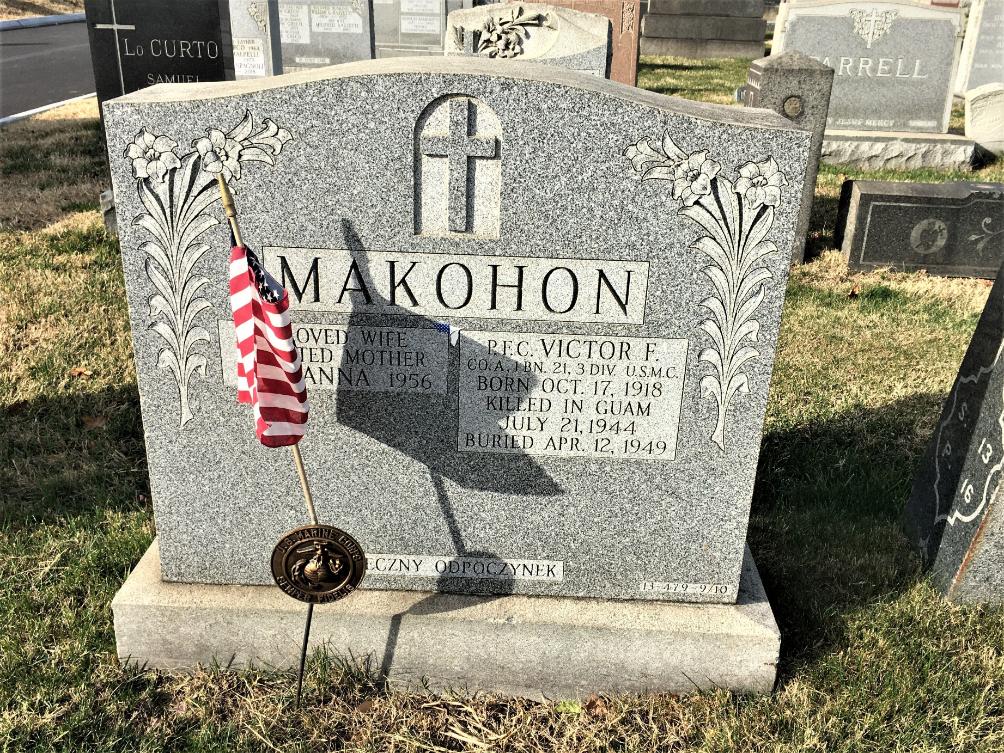 Victor Felix Makohon was born on October 17, 1918. He served in Company A, 1st Battalion, 21st Marine Regiment, 3rd Marine Division as a Private First Class during World War II. He was Killed in Action on July 21, 1944, during the Battle for Guam.