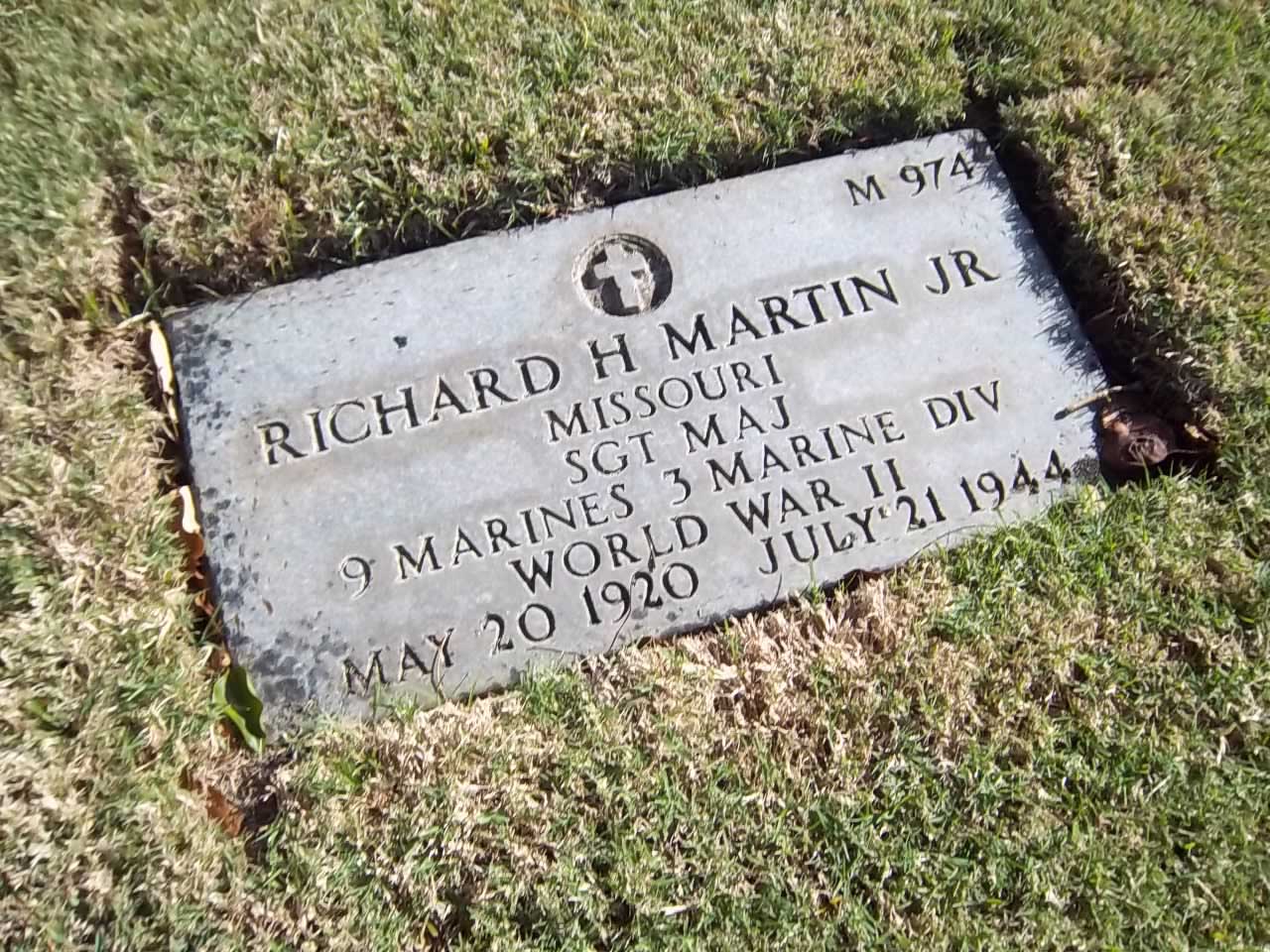 Richard H. Martin Jr. was born on May 20, 1920. He served in the 9th Marine Regiment, 3rd Marine Division as a Sergeant Major during World War II. He died on July 21, 1944, during the Battle for Guam.