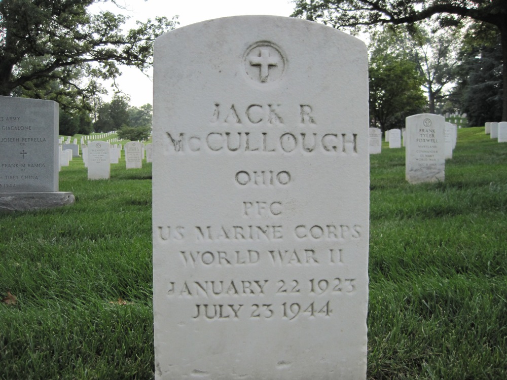 Jack Russel McCullough was born on January 22, 1923. He served in Company I, 3rd Battalion, 3rd Marine Regiment, 3rd Marine Division as a Private First Class during World War II. He was Killed in Action on July 23, 1944, during the Battle for Guam.